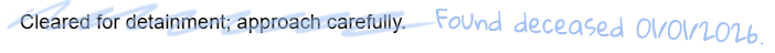 Sweep possessed an unprecedented and momentous power: he was able to not only review past events on demand, but to also directly and immediately revise them. Examinations suggest that such alterations began as only tenuous and unconscious, but under the influence of a psionic mentor from 2024 to 2025, the subject's control grew. By the end of 2024, Sweep presented an extreme threat to timeline stability and integrity. The full scope and ramifications of his interactions with our timeline remain under investigation to this day. Further reports may be retrieved from the DMC science division.